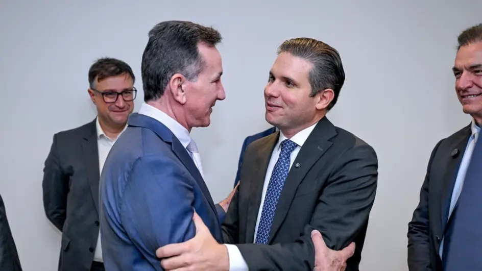 O deputado catarinense Jorge Goetten (E) em encontro com o presidente da Câmara dos Deputados, Hugo Motta: Fonte